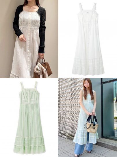 さまざまな模様の繊細なコットンレースをあしらった、ヴィンテージ調レースのキャミワンピ。トレンド感を楽しめて、レイヤードもしやすい前開きデザイン。さらりとしたコットン素材のホワイトとミントが、春っぽくておすすめです。