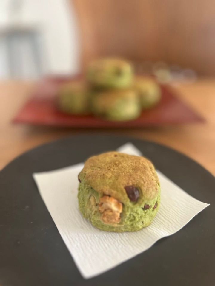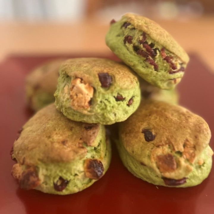 3. 2026紅白をテーマに抹茶ベース×ドライクランベリー(紅)×ホワイトチョコ(白) のハッピースコーンレシピ!