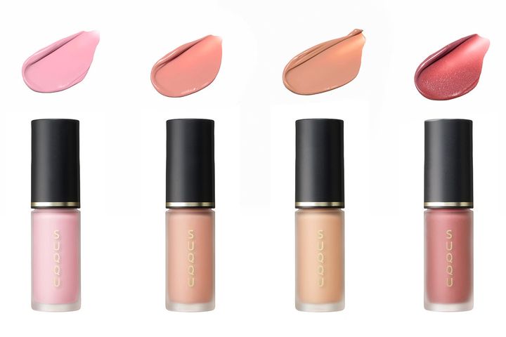 肌の湿度感を重視するなら、リキッドタイプをチョイスして。「02 綿香 -WATAKAORI」は、大人の頬にさりげない甘さを添えるコットンピンク。「03 桃心地 -MOMOGOKOCHI」は、高揚感あふれる桃の花のようなピーチピンク。「04 優纏 -YUUMATOI」は、肌トーンをヘルシーに整えるコーラルベージュ。「05 棘苺 -TOGEICHIGO」は、果実を噛んだような美しいにじみ感のブラッディレッド。