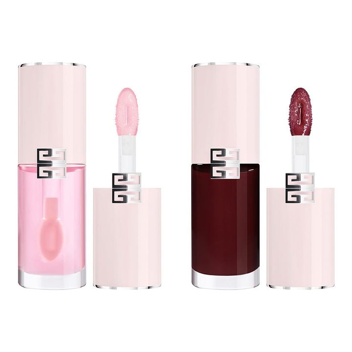 ジバンシイからデビューしたリップオイルは、スキンケア成分を配合した豊かなうるおいが特徴。「No.00 ローズクォーツ」は、やわらかな血色を宿しながら透き通るツヤと輝きを放つピンク。「No.10 ガーネットベリー」は、シアーな青みを潜ませたディープバーガンディ。心地よい清涼感があり、フレッシュな使い心地。