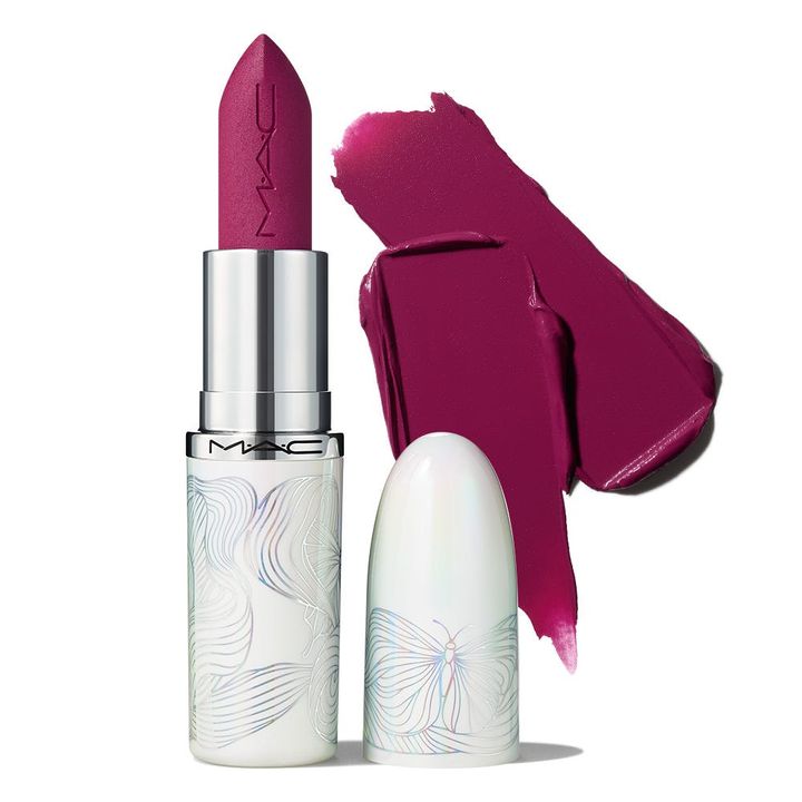ブラウン系が苦手なら、こんな大胆なラズベリーカラーにトライするのもおすすめ。バームのようななめらかな質感と濃密なうるおいで、乾燥レスなつけ心地。