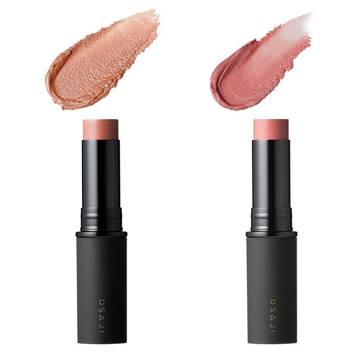 肌にすべらせ、発光カラーをオンするハイライトスティックから、血色感を足す2つの限定色がお目見え。「EX04 Akanezora〈あかね空〉」は、透け感のあるアンバーローズにホワイトブルーパールをブレンド。「EX06 Monshou〈紋章〉」は、ゴールド&ピンクパールが繊細に輝く、洗練のソフトピンク。