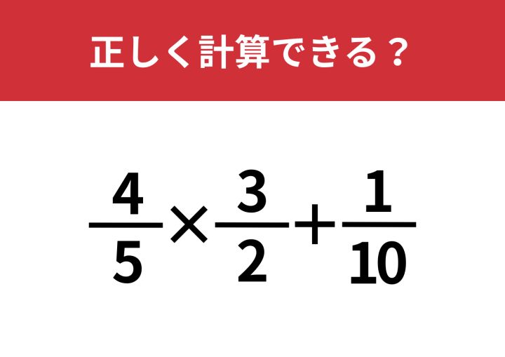 「(4/5)×(3/2)+1/10」正しく計算できる?