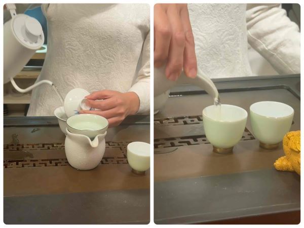 目の前で見せてくださる、お茶を淹れる際の美しい所作に心打たれます。 一煎ずつ、指先の動きひとつにまで神経を研ぎ澄ませ、丁寧に、静かに。 凛とした空気の中で、お湯の音や立ち上がる香りを感じながら待つ贅沢な時間です。
