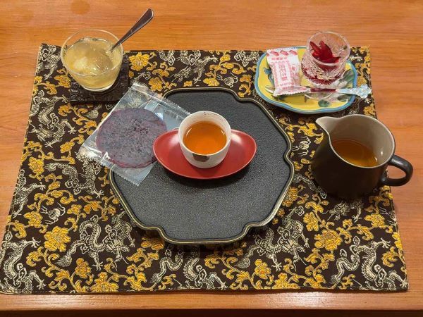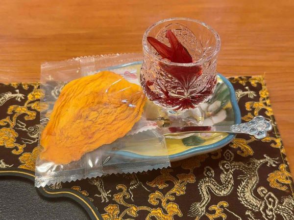 ・ドライフルーツは愛文マンゴー、パイナップル、ドラゴンフルーツの3種類からお好きなのを! 私は「愛文マンゴーのドライ」を選びました。紅茶の蜜のような香りがそっと溶け合い、濃厚な甘さが広がります。 ・ハイビスカスのガクの蜜漬け シャキシャキとした食感と、爽やかな酸味がアクセントになり、素材本来の甘みがより際立っていました。 ・花生酥(ファシェンスー) 台湾の離島・澎湖(ポンフー)の名産として知られるピーナッツ菓子。 ピーナッツペーストを水あめで固めたもので、お口の中でほろっと崩れる素朴な甘さが特徴です。 濃厚なピーナッツの風味が、温かいお茶の味わいをいっそう引き立ててくれます。