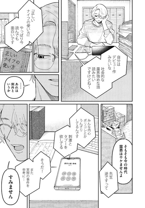 3. 未成年の殺人事件をもとに鮮烈デビュー。小説家と殺人者、ふたりの運命が交錯する/正しいナイフの使い方①