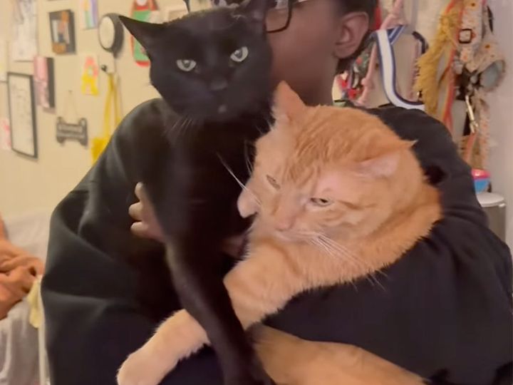 大喧嘩のあとにまさかの罰→強制ハグで仲直り? 気まずそうにする猫たちが可愛い