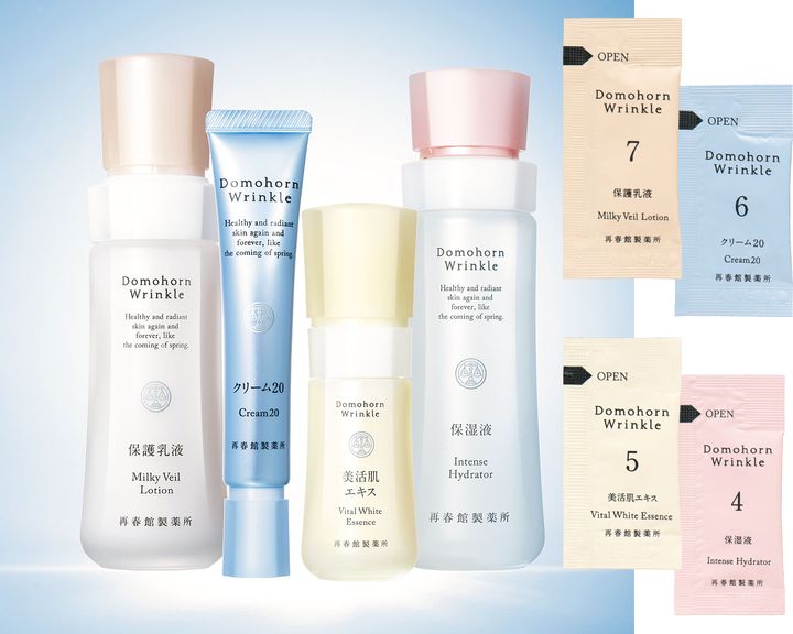 新発見!でパワーアップしたドモホルンリンクルをラインでお試しできます。保湿液 1.00mℓ×1回分、美活肌エキス【医薬部外品】 0.25mℓ×1回分 クリーム20【医薬部外品】 0.25g×1回分、 保護乳液 0.71mℓ×1回分