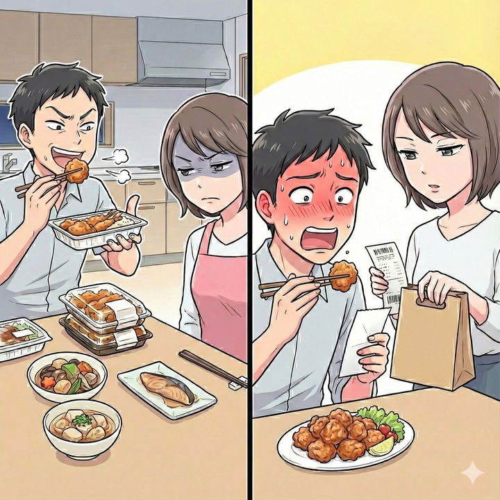 夫は自信満々に唐揚げを一口食べました。すると、案の定、嫌な顔をして吐き捨てるように言ったのです。