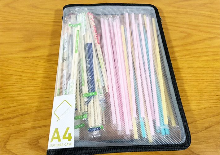 まずは、ストローと割り箸をファスナーケースに入れてください。
