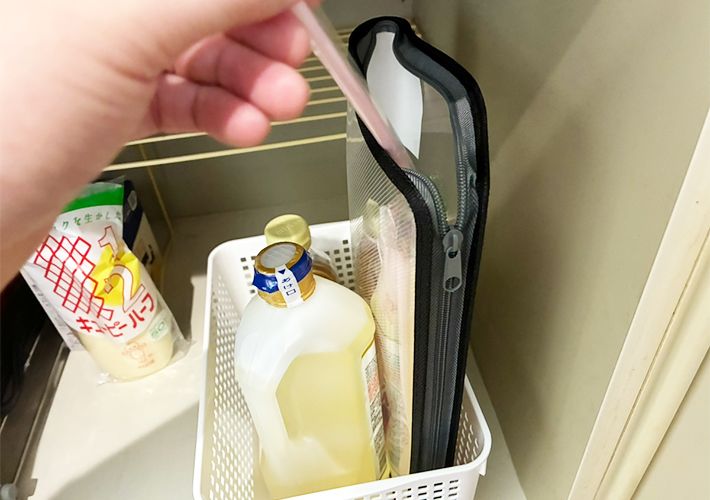2. ファスナーを片側だけ開けて! キッチン雑貨の収納アイディアに「実用性抜群!」「悩みが解決した!」