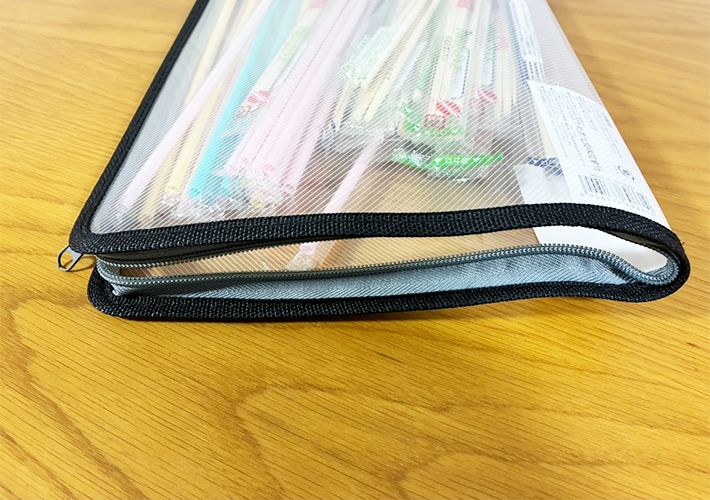 ストローと割り箸をファスナーケースに入れる
