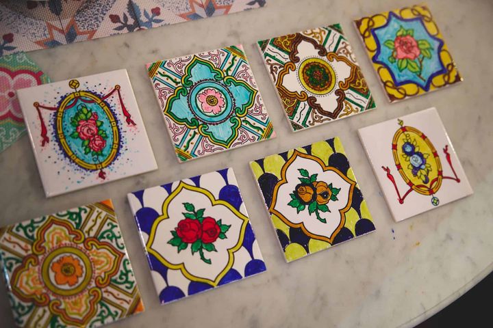 タイルに色を塗る体験も