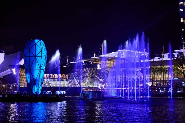 光と水のショーを目の前で鑑賞