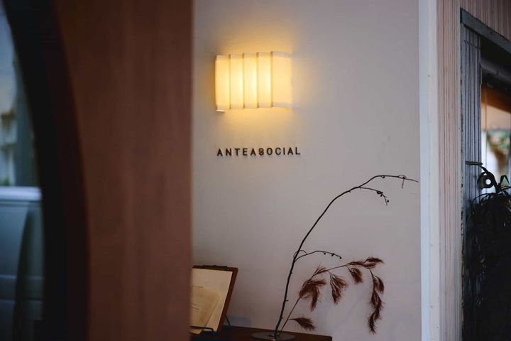 “Anti-social(アンチソーシャル)”をもじっていて、“静かに・自分と向き合うため”、“都会の喧騒から離れてお茶に没頭するため”の場所、というコンセプト