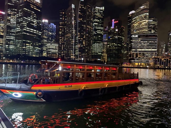 夜は、バーやレストランが立ち並ぶ、クラークキー(Clarke Quay)から、出発するリバークルーズを楽しみました。乗ったのは、昔ながらの木造船を再現したバムボート。屋根付きベンチ席と、屋外デッキに分かれた小型の船で、夜風にあたりながらゆったり街の夜景を眺められるのが魅力です。川岸のネオンがさんさんと輝き、現代都市シンガポールの煌きを感じました。