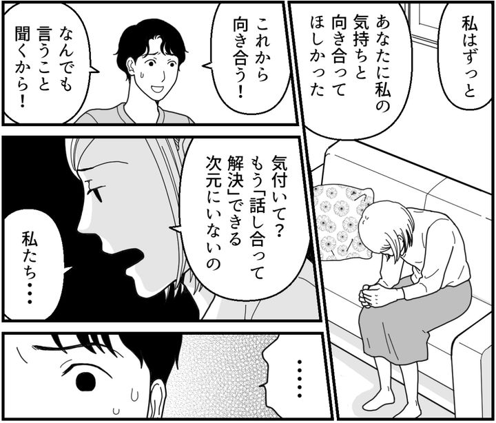 すでに記入された離婚届を見て、ヒロトは焦っていました。けれど私たちはもう、話し合って解決できるような次元にいません。私の気持ちはすっかり切れていたのです。いくら追いすがられても、もう夫婦を続けていこうとは思えませんでした。