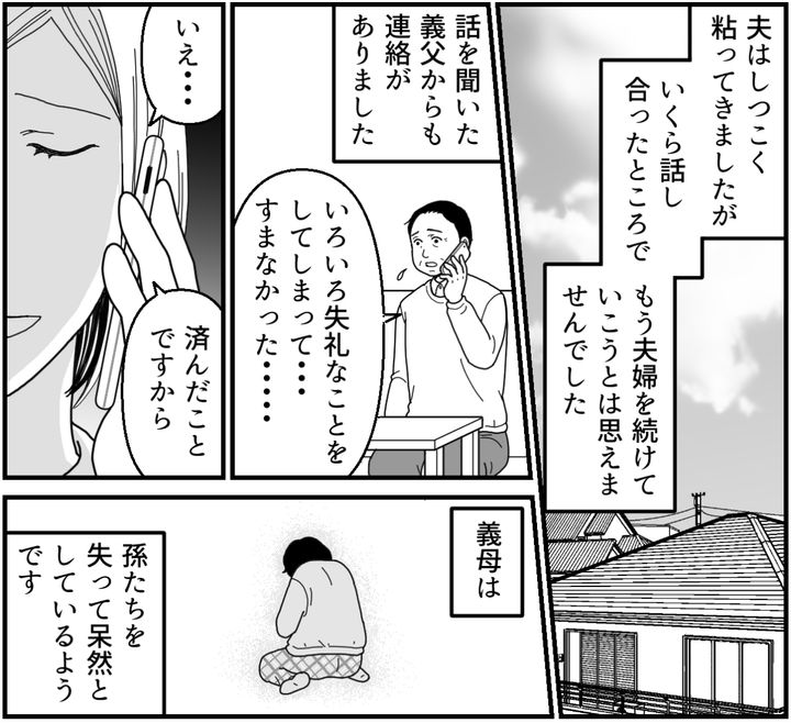 子どもたちは義母から怒鳴りつけられたことがショックだったようで、それ以降義実家に行きたいとは言わなくなっていました。子どもたちの親権は私が持つことになり、私とヒロトは離婚しました。