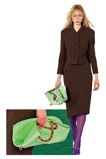 ミニサイズだと物静かで上品。かしこまったイメージのあるクラッチバッグは、日常づかいにも向く実用的なビッグサイズにアップデート。腕に収まりきらないほどのクラッチが等身大のムードをかもし、豪華なファーコートもがんばりすぎず、親近感のあるスタイルに。