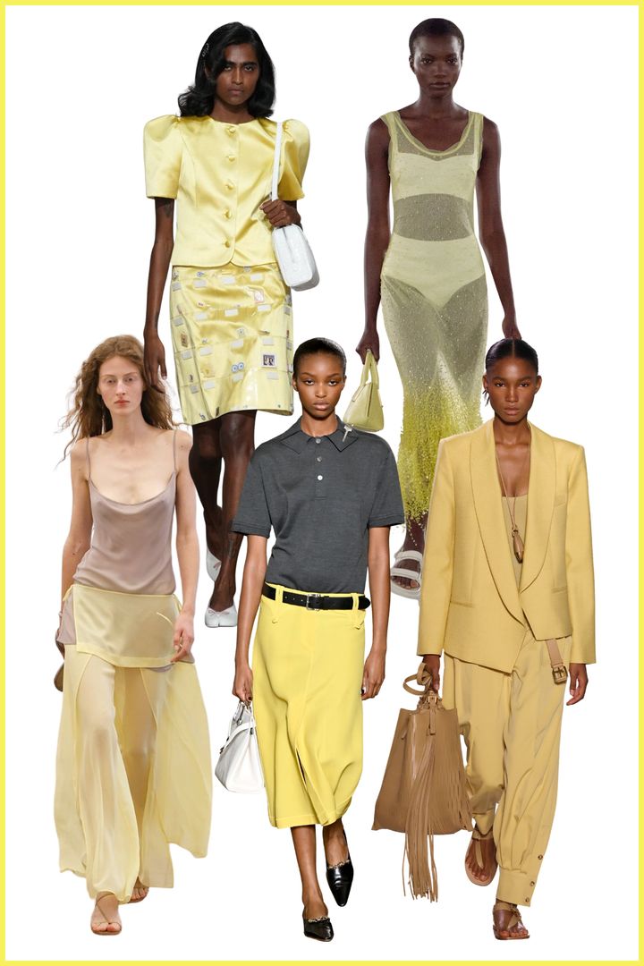 春夏らしいフレッシュさをまとったシトラスイエローが、今季のランウェイでひときわ爽やかな存在感を放っている。「マイケル・コース」ではセットアップに取り入れ、構築的ながら軽やかなムードを演出。「トリー バーチ」ではチャコールグレーと合わせ、フレッシュさの中にモードなコントラストを効かせていた。「シムカイ」ではグリッターをちりばめたドレスで幻想的に演出するなど、みずみずしさと洗練の両立を叶えるキーカラーとして多彩な表現が見られた。