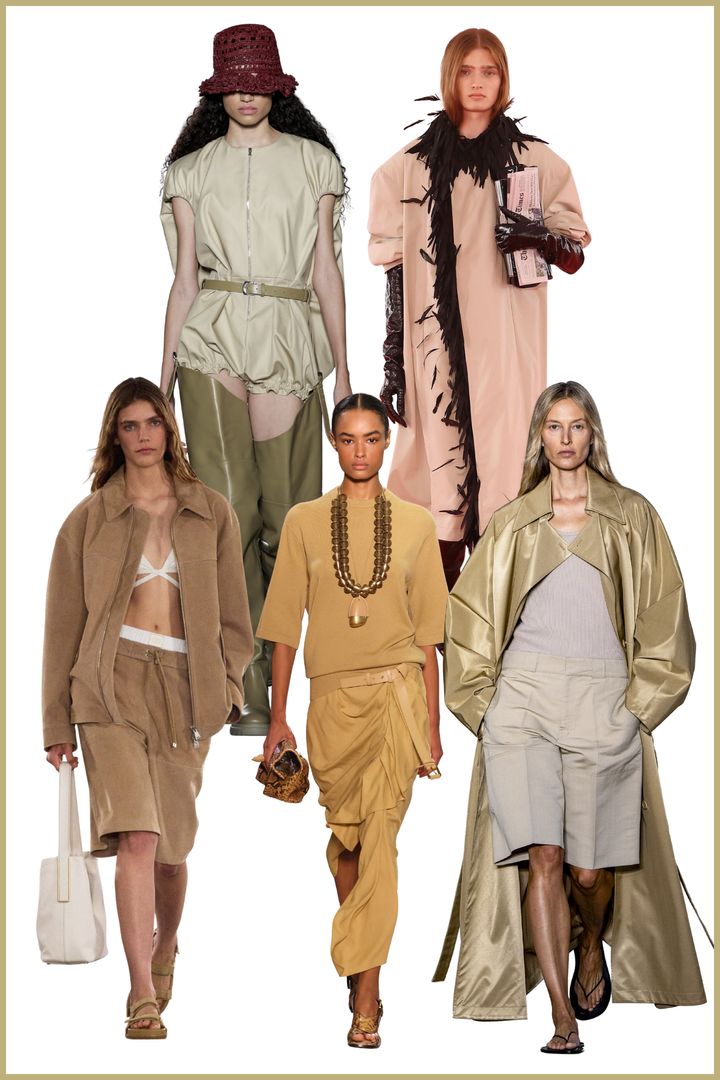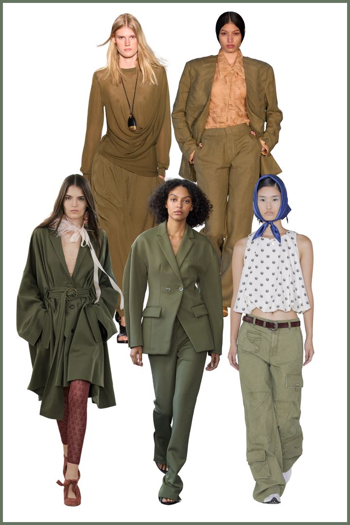 今季はアースカラーの延長線として、落ち着きとしゃれ感を兼ね備えたオリーブグリーンがランウェイで存在感を放った。グリーンの爽やかさにブラウンの落ち着きをほのかに感じさせるこの色は、取り入れるだけで凛とした印象に。「マイケル・コース」や「カンピージョ」ではセットアップやドレープスタイルに、「ティビ」では構築的なテーラードに取り入れられ、クラシックさとモダンさを両立させていた。
