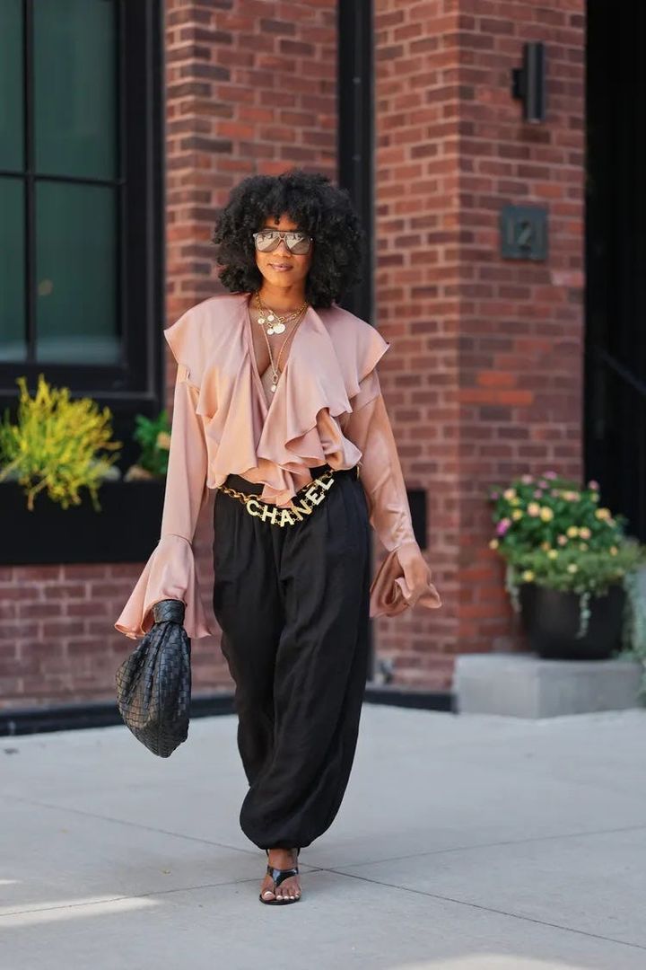 やわらかなトーンのダスティローズは、黒やチャコールなど深みのあるカラーと組み合わせて引き締めるのが今季の気分。優美さと落ち着きを併せ持つ色だからこそ、モードな輪郭を与えることで甘さが中和され、大人らしい洗練感が際立つ。また、レザーやサテンなどシャープな質感を取り入れると、ニュアンスピンクにツヤが宿り、フェミニンになりすぎない。
