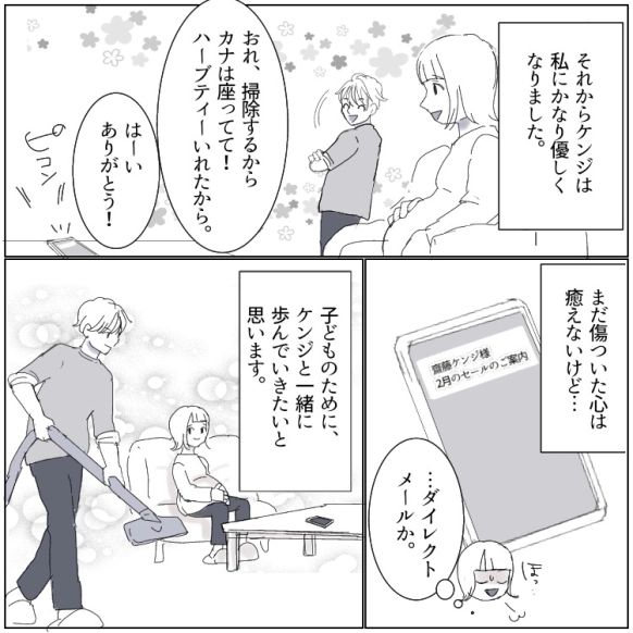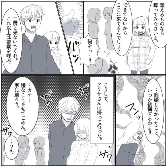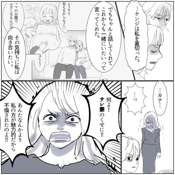 不倫相手にバカにされたものの、毅然と言い返したカナ。辛い出来事でしたが、これからは夫婦2人で向き合って、幸せな家庭を築いていってくださいね。