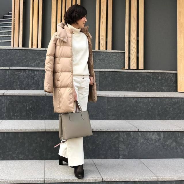 【50代におすすめのダウンコートの色1】白・オフホワイト