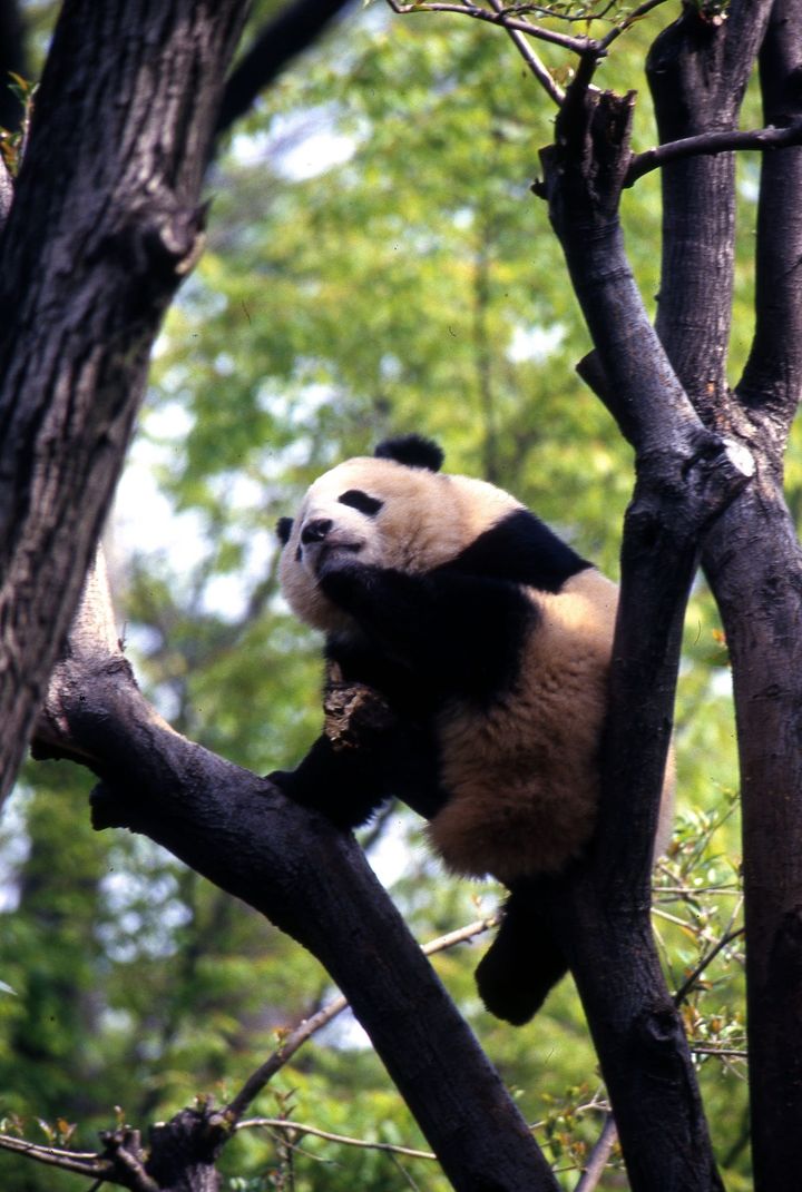写真:1987年上野動物園にて、巧みに木登りするファンファンの様子。