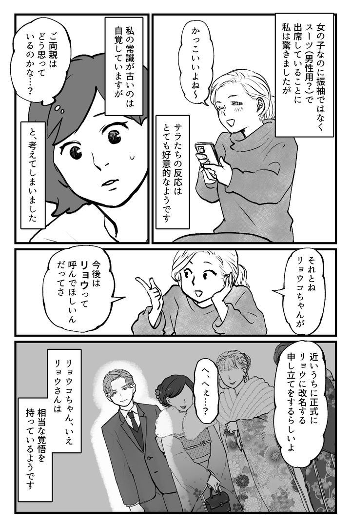 3. <成人式、振袖が常識?>娘の華やかな姿に感無量!…が、ひとりスーツ姿の子がいて?【まんが】