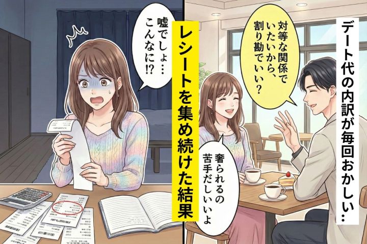 彼「割り勘でいいよね?」→デート代の内訳が毎回おかしい...私がこっそりレシートを集め続けた結果