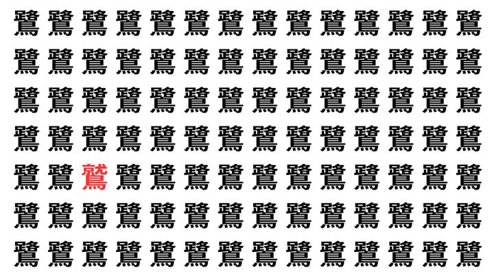 たくさんの「鷺」の中に、よく似た別の漢字が1文字だけ隠れています。