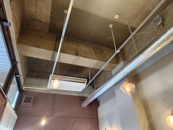 天井はむき出しになっており、高さを感じられるようにとの工夫が。