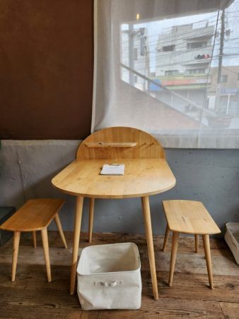 テーブル席には荷物をかけられるフックが置いてあり、細やかな配慮が嬉しいですね。(荷物かごもあります)