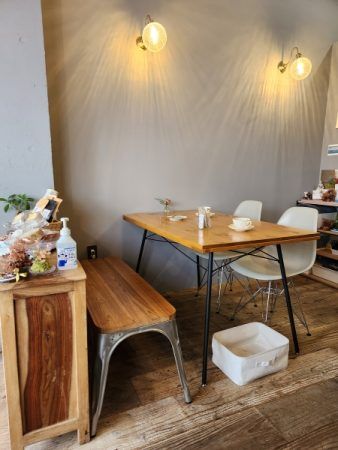 手前と店内奥にはカウンター席があり、テーブル席も3組分あります。 席同士の間隔も程よく空いているので、ゆったりと過ごせます。