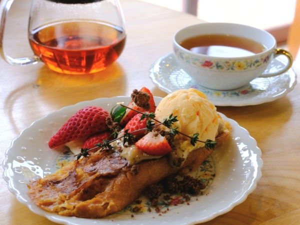 オススメはバスクチーズケーキやフレンチトーストとのことですが、今回はせっかくなので季節限定の「季節のフレンチトースト」を紅茶と一緒にいただくことに。