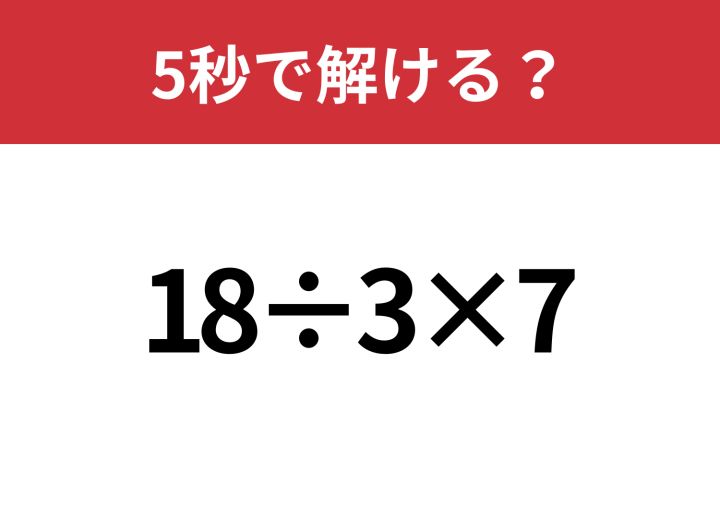 正解できないとまずい問題!?「18÷3×7」5秒で解ける?