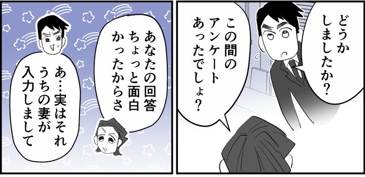 ヨウスケから会社のアンケートの回答を頼まれ、「ブログのおかげで生活に張りが出た」と正直に書きました。
