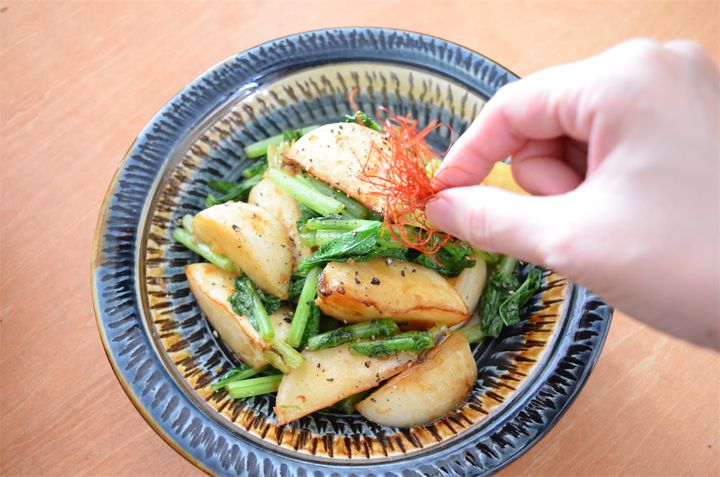 正直、一味や七味で代用してもいいかなと思っていましたが、糸唐辛子特有のキリっとした辛味と、爽やかな風味がこの料理のおいしさをグンと引き上げていますよ。