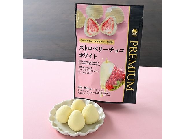 フリーズドライいちごの酸味と、ホワイトチョコレートのコクが楽しめるストロベリーチョコです。