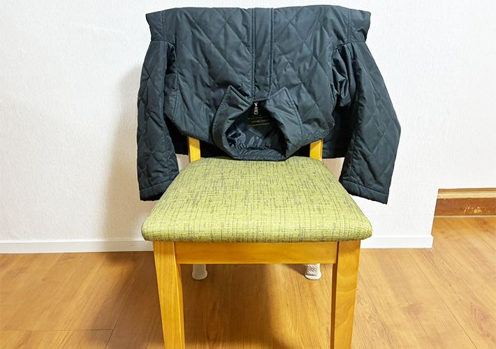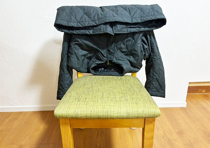 次に、以下の写真のようにコートを椅子の背もたれにかけてください。