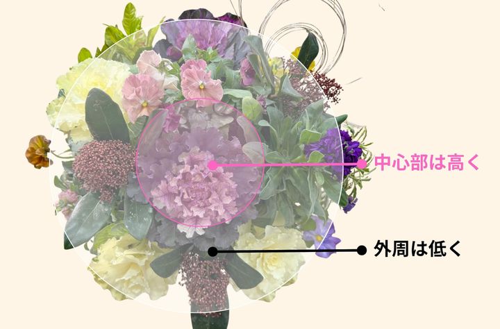 ハボタンの「量感」と彫刻のような「造形力」で華やかさを