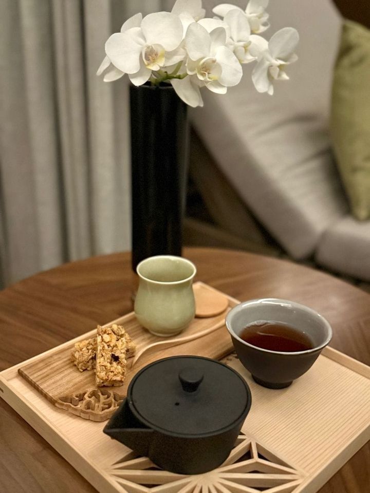 施術後はレストルームでお茶とオリジナルのシリアルバーをいただきました。