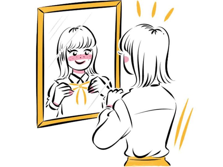 出かける前は必ず身だしなみをチェックして。姿勢を良くしたり、胸を張ると自分らしさ強化に。