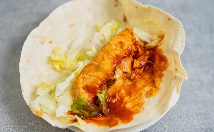今回は中身を確認したかったので、お皿の上でトルティーヤを開いてみました。