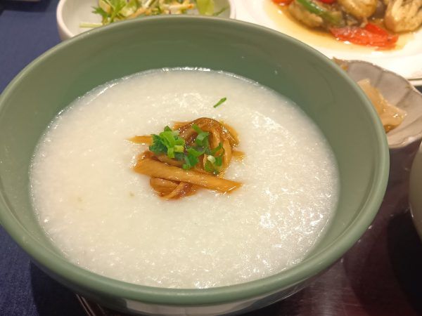 ★中華お粥 トッピングの炒め葱がこれまた絶品! 濃い味わいでも、シンプルでとろとろのお粥と調和し、いくらでも食べることができます。もちろんおかわりして、そしてお腹苦しい・・(笑)