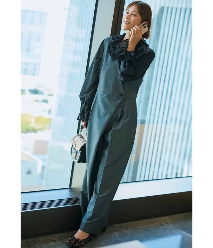 オールインワン¥66,000(デパリエ/デパリエ 伊勢丹新宿店)ブラウス¥23,980(ハッシュニュアンス/オンワード樫山 お客様相談室)バッグ¥220,000(ピエール アルディ/ピエール アルディ 東京)パンプス¥4,480(OPAQUE.CLIP/ボーテ ド オペーク)リング¥99,000(マリハ)
