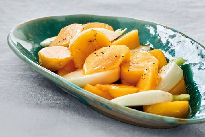 大根とにんじんのなますから着想。「かぶと柿のサラダ」のレシピ