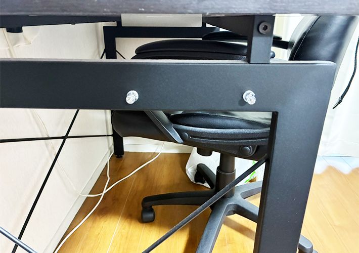 試しに、カバンを引っかけて収納できるか、デスク横にマグネットを設置。1つでは不安定だったので、2つ横に並べてくっつけることに。