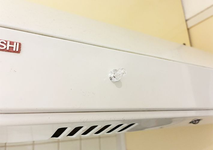 はじめに、マグネットがくっつく場所を探してください。筆者は換気扇にくっつけました。